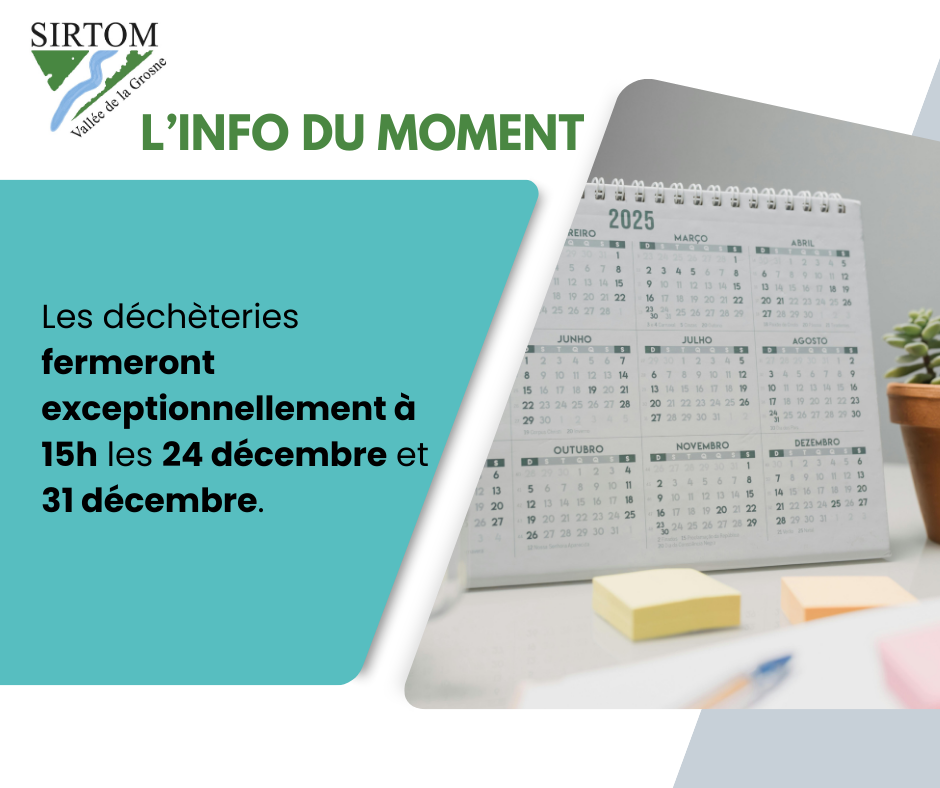 ❌ Les déchèteries seront fermées les 25 décembre et 1er janvier.