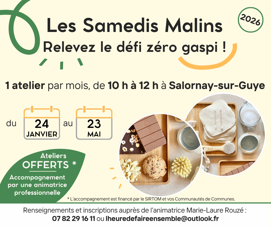 Le SIRTOM de la Vallée de la Grosne lance la 5ème édition des « Samedis malins », en partenariat avec les Communautés de communes adhérentes.